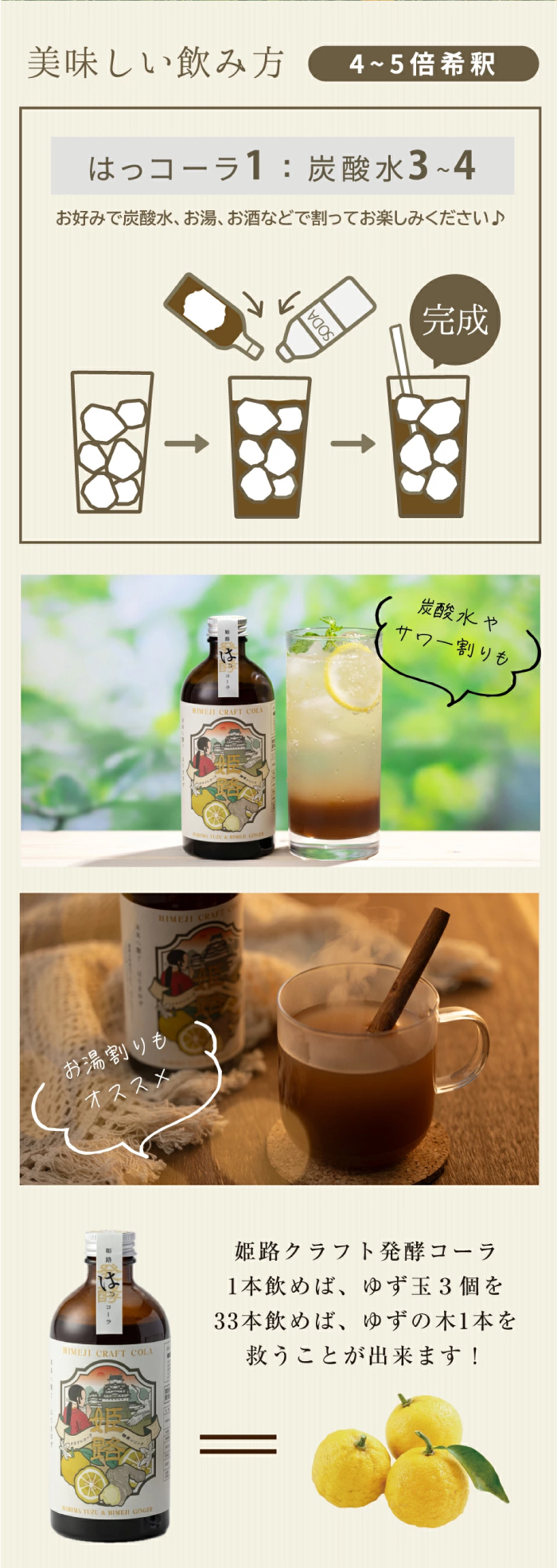 [お召し上がり方]コーラ原液1に対して、炭酸水4~5で割ってお飲みください。お湯割りやお酒割りもオススメです。